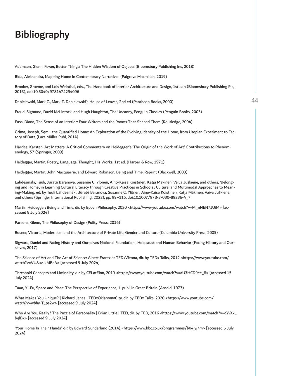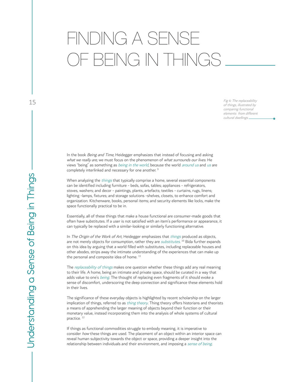 Martin Heidegger’s theories, particularly Building Dwelling Thinking and Being and Time, have been pivotal in my research, helping me understand the essence of dwelling and being, respectively. These theories were further analysed alongside Albert Frantz’s philosophical inquiries into science and art, and Dr Brian Little’s exploration of idiosyncratic beings and their power to evoke personal stories. Reflecting on these philosophies, I examined the homes through the lens of threshold and liminality, aiming to provide insights for users to embrace the art of dwelling to evoke a true sense of being within the intimate sense of home.