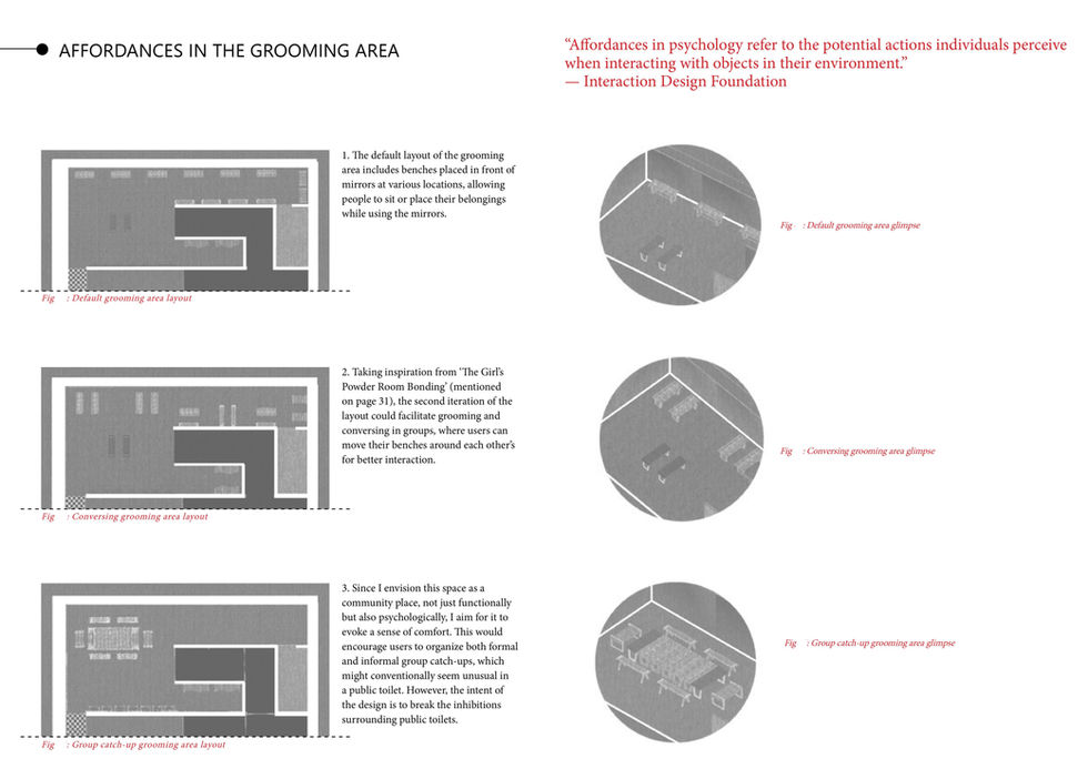 My project seeks to revolutionize public toilet design by introducing unconventional interiors, transforming these spaces into community-centered "third places" within the built environment. Drawing inspiration from Jack Sim Juek Wah’s philosophy—“If we don’t talk about it, we won’t improve”—the design aims to spark open conversations and propose innovative approaches to upgrade public toilet design, challenging traditional perceptions and fostering inclusivity.